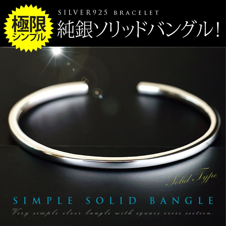 極限の究極のシンプル 純銀ソリッドバングル シルバーアクセサリー ブレスレット シルバー925 メンズ シンプル b0684