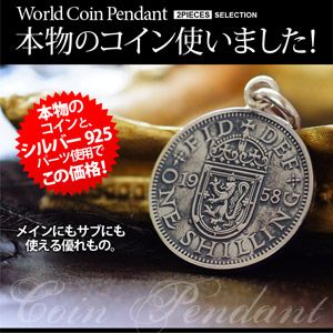 世界各国の本物のコインをペンダントにしました。中性的な印象で、メンズ・レディース共に使えるペンダントです。