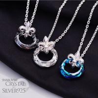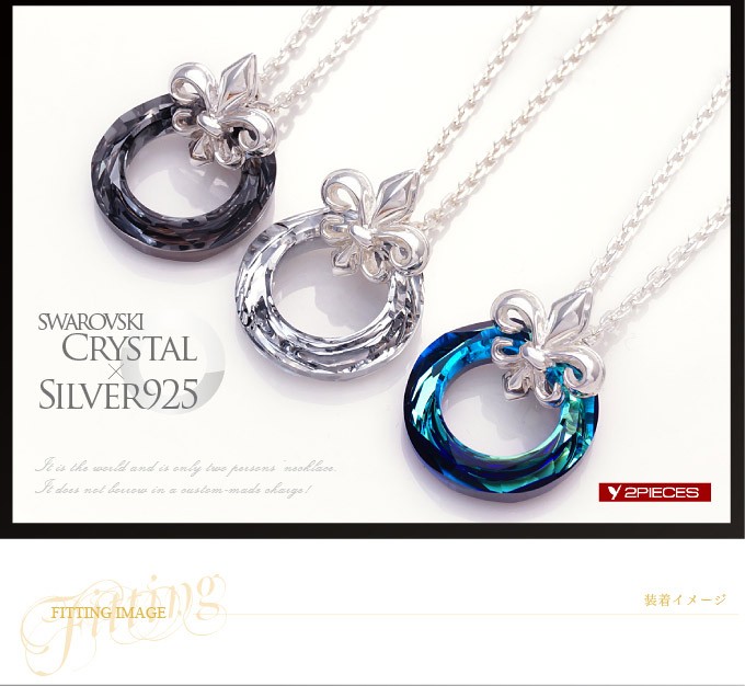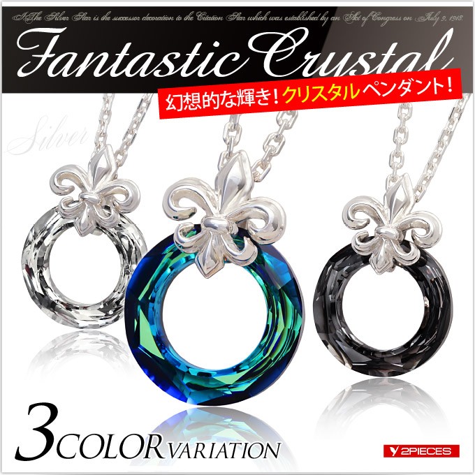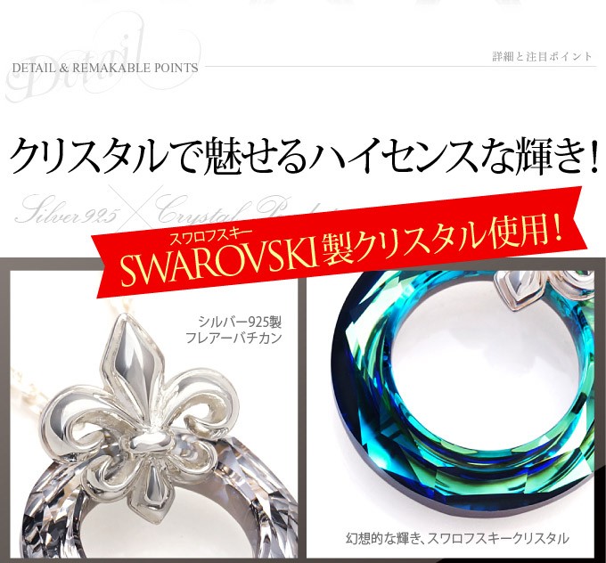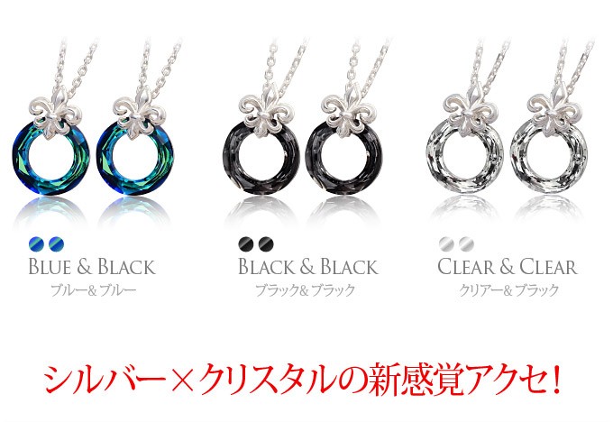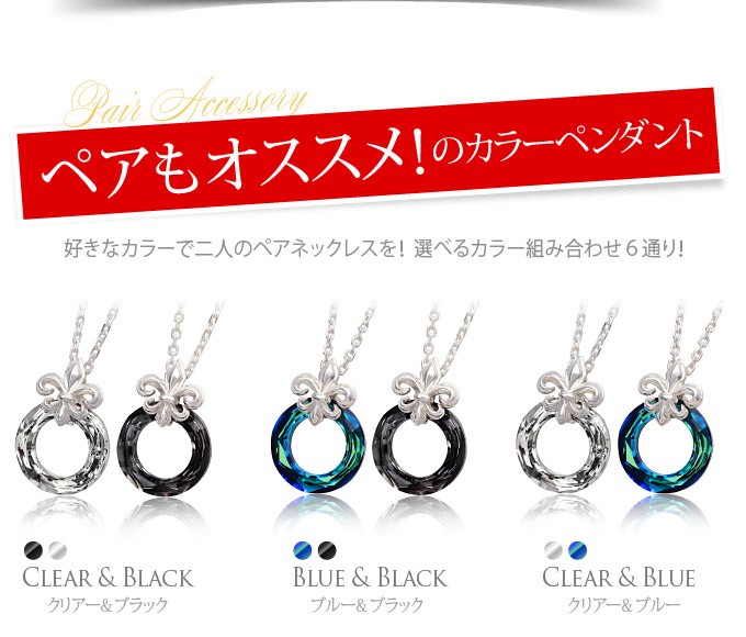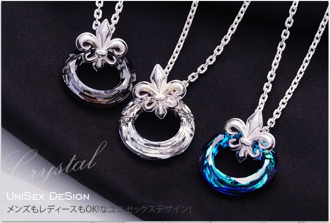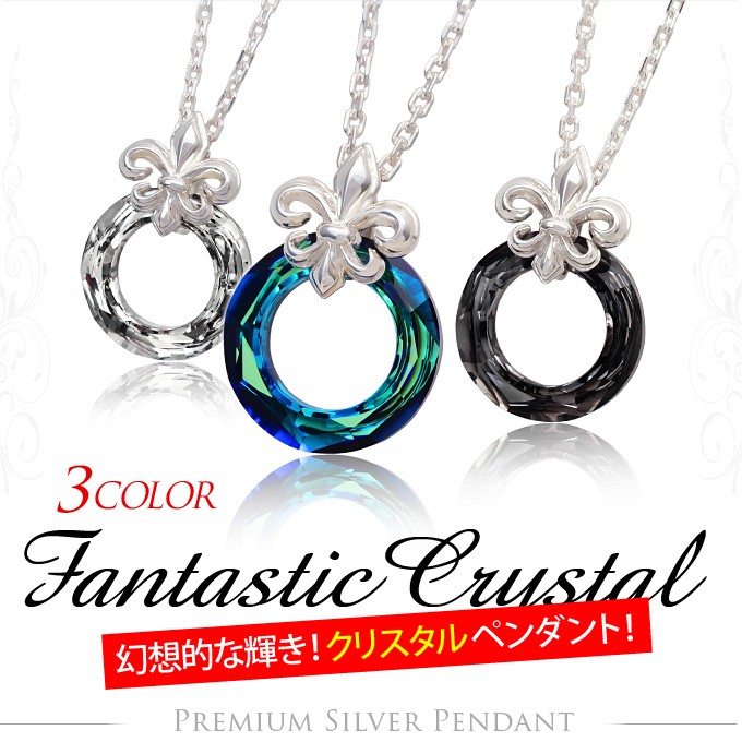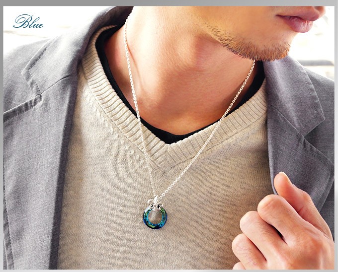 スワロフスキークリスタルとシルバー925製のペンダントです。リング型のクリスタルとフレアデザインのバチカンがシンプルながらもアクセントのあるハイセンスなアクセサリーです。 美しい輝きを誇るスアロフスキークリスタルを使用!ファンタジックなブルーとクリア、ブラックの3色を用意しました。メンズ、レディースともに使えるのでペアアクセサリーにもおすすめのペンダントです。