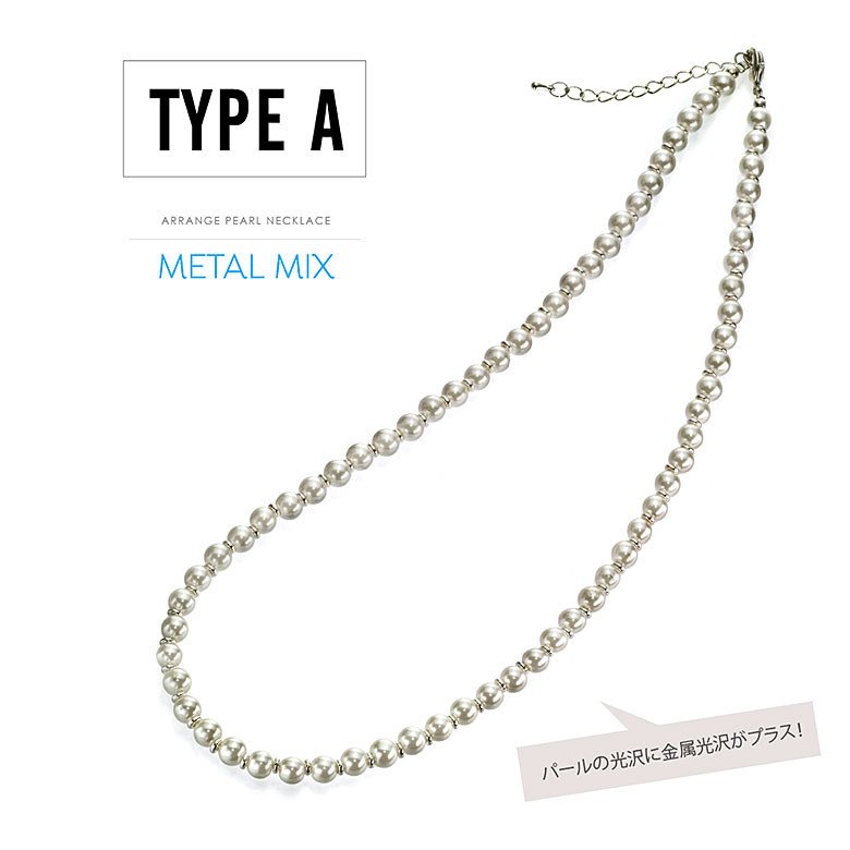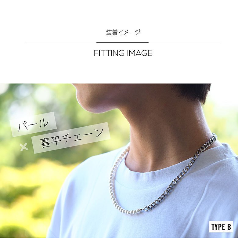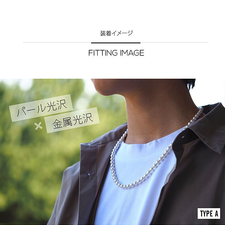 8mmサイズの程よい大きさのパールを使ったメンズパールネックレスです。真珠のネックレスをアレンジしてメンズのファッションにも合わせやすいデザインに仕上げました!メタルビーズや喜平チェーンを合わせることでカジュアルに着けこなせ、真珠の上品な光沢の魅力を気軽に楽しめるアイテムです。※パールはパール調コーティングをしたガラスパールを使用しています。(アジャスター、ビーズ、フック部分は合金を使用しています)