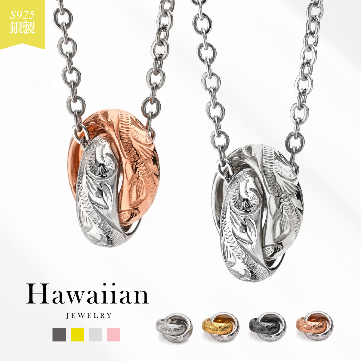 ペア ネックレス 金属アレルギー対応 ハワイアンジュエリー シルバー925 ハワイアン ペアアクセサリー 波 リング pe2247-pair