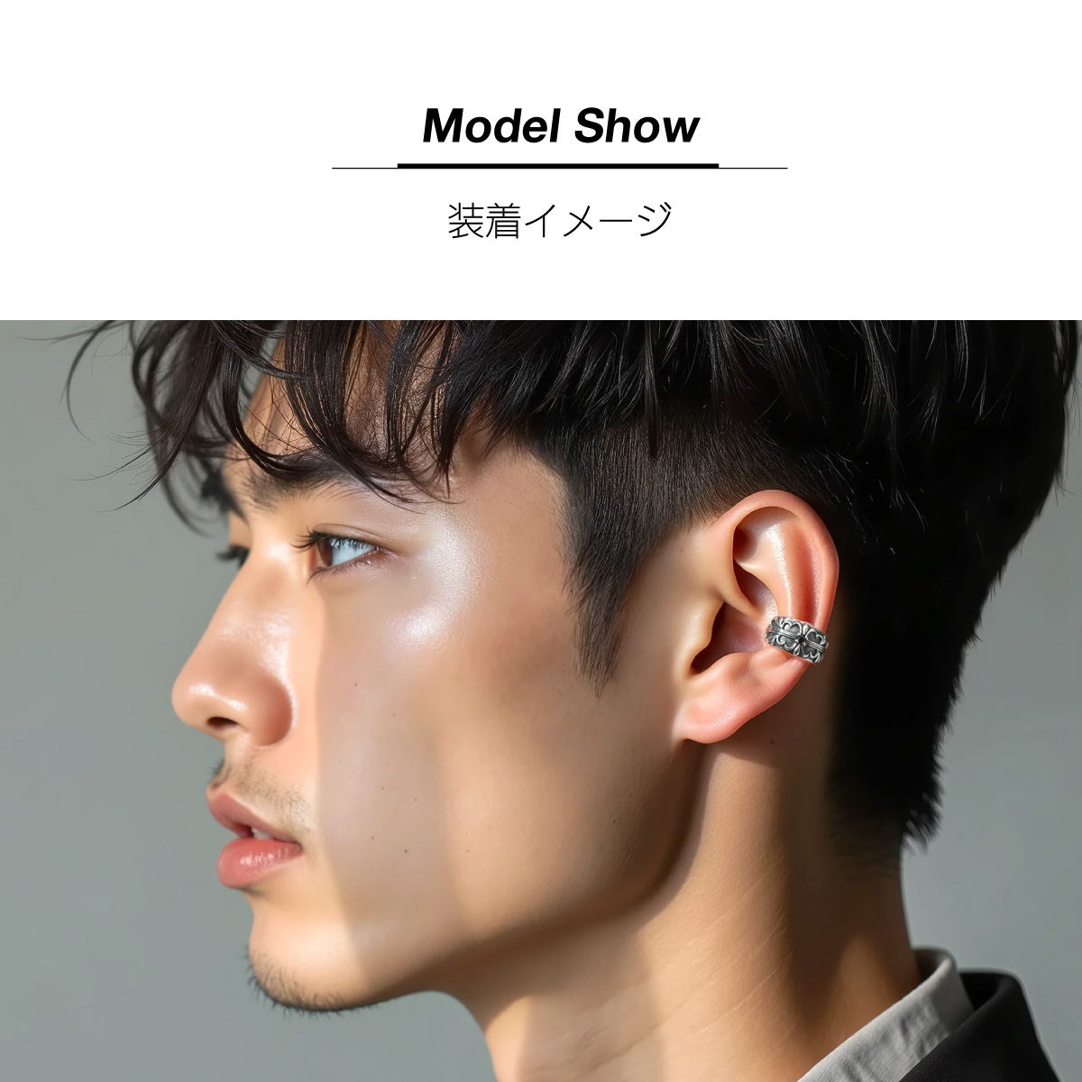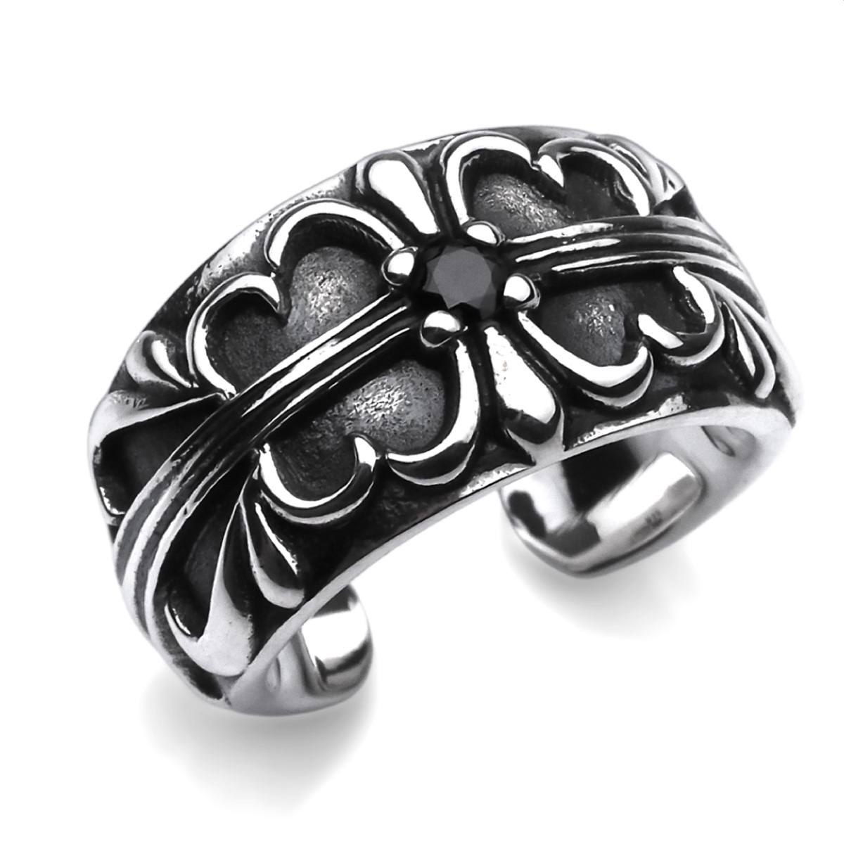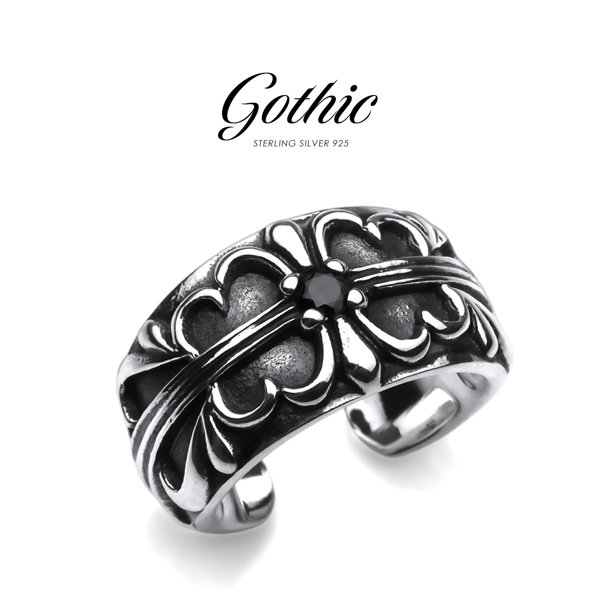 ゴシック調の十字架が美しい、燻し加工のシルバー925製のイヤーカフです。曲線と直線が交わり、中央にブラックジルコニアが輝くゴシックなデザイン。黒と銀のコントラストが服装にアクセントを加え、スタイリッシュに仕上がります。軽量設計で耳にしっかりとフィットし、簡単に装着できる使いやすいアイテム。イヤーカフなのでピアスホール不要で着けられます。素材は、ニッケルフリーで本格的な仕様のシルバー925で作られています。
