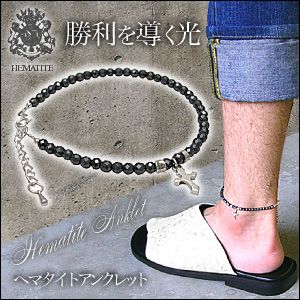 アンクレットは足元につけるアクセサリーのことで、ここまでクールなアンクレットはそうそうありません!ヘマタイトの強い光輝は時にブラックダイヤモンドと呼ばれます。古来より戦いの神マルスの加護を受ける石として戦士たちのお守りに使われてきました。勝利へと導くパワーや、自分の中にある自信を導き出してくれます。アジャスターやパーツ部分には純銀のシルバーパーツを使用しました。強力なパワーを与えてくれながら、デザイン性も高く仕上がったパワーストーンアンクレットです。