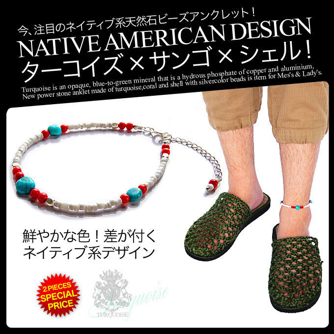 アンクレット メンズ・レディース ターコイズ・サンゴ アクセサリー so0496