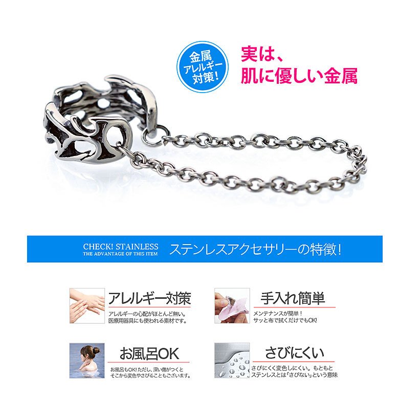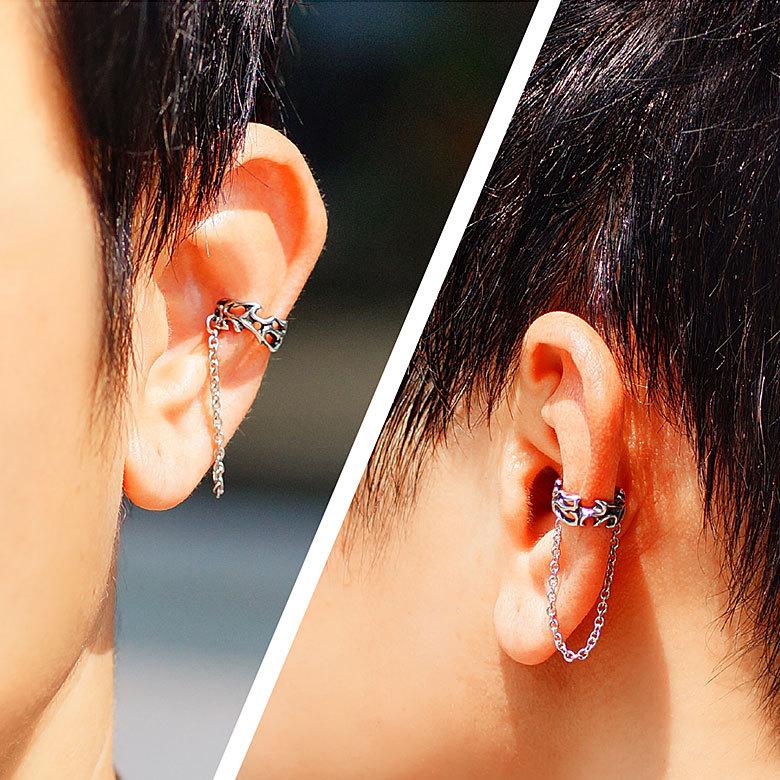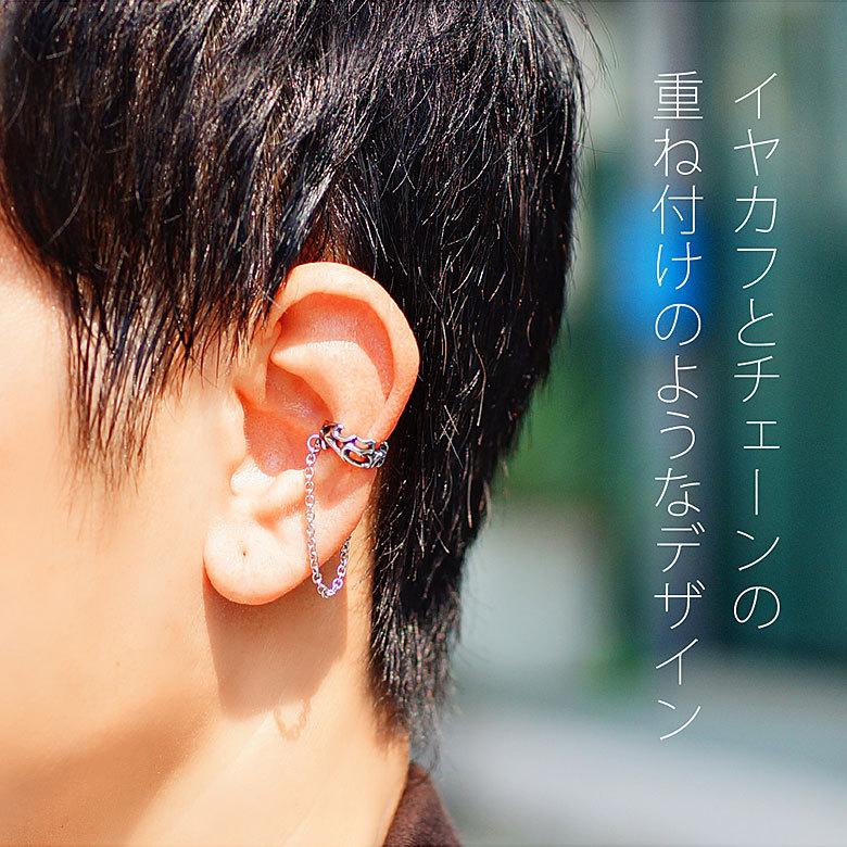 チェーン付ステンレスイヤーカフ spi0079 ステンレスアクセサリー イヤーカフ ステンレス メンズ トライバル 片耳用売り