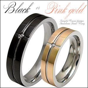 ステンレスアクセサリー リング・指輪 ペアリング ペアアクセ ピンク・ブラック クロス ジルコニア sr0099
