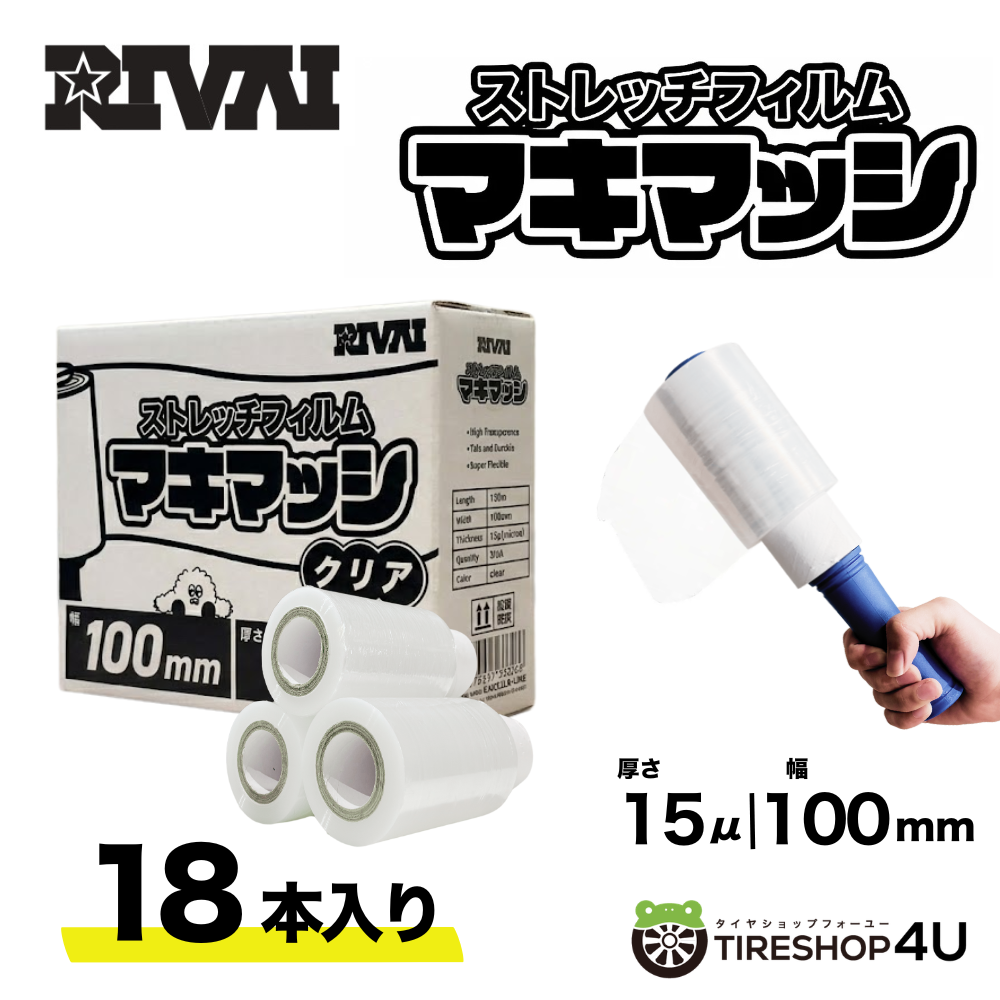 ストレッチフィルム マキマッシ 100mm×150m 15ミクロン 18本入り クリア 透明 ホルダー付き 幅 100mm 長さ 150m ラップ 梱包 新品RIVAI