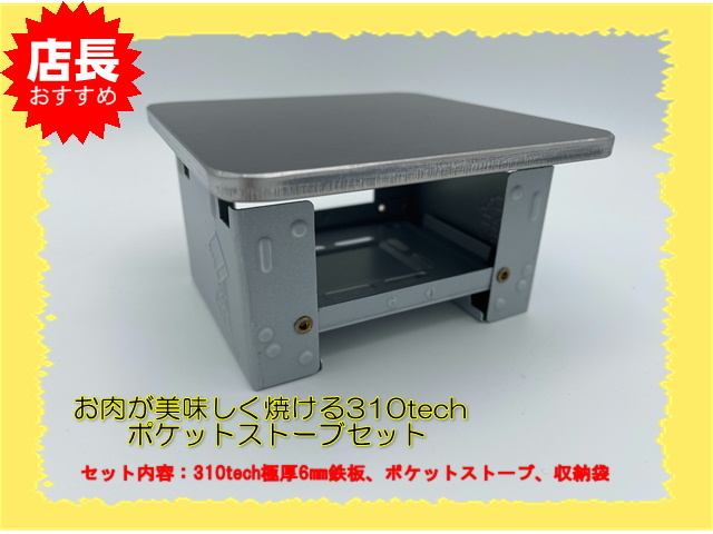 ポケットストーブ コンパクト極厚バーベキュー鉄板 セット収納袋付 ソロキャンプ310tech