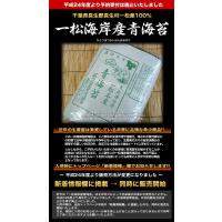 | 名称 | 青海苔(新物) | | 内容量 | 100枚入 | | 原材料名 | すじあおのり | | 原産国 | 日本 | | 原産地 | 千葉 | | 賞味期限 | およそ90日(長期保存の際は要冷凍) | | 保存方法 | 高温多湿、直射日光を避ければ常温保存も出来ますが、変色や風味落ちを防ぐために必ず密封のうえ冷蔵庫または冷凍庫での保存をおすすめします。なお、長期保存の場合は袋ごとアルミホイル等で巻いて遮光し、超低温での冷凍保存をお願いいたします。 | | 配送温度帯 | 常温 | | メーカー | 一松内水面漁業協同組合 | | 販売者 | 株式会社さつま屋 | | 商品説明 | この一松海岸産青海苔は、ここ数年の天候不順や温暖化、海水の水質汚染などの影響で近年は壊滅的な不作年となっており、生産者の方々の自家消費分の確保すら厳しい状況です。このため、ここ数年はせっかくのお問い合わせをいただきながら、その多くのお客様に青海苔をお届けすることが出来ない年もあるほど、その年々によって出来高が大きく変動する希少な青海苔となっております。この一松海岸産青海苔は、地元千葉に古くから多くの仕入ルートを持つ当店にとっても大量確保が非常に難しくなった商品でありますが、この楽天市場でも有数の仕入調達量を誇る当店にどうぞご期待ください。 | | ヒネはばのり10枚 | H29年9,800円/H28年12,500円/H27年8,900円/H26年6,700円/H25年5,200円/H24年5,200円/H23年4,300円/H22年4,900円/H21年4,500円/H20年4,500円 <過去の税別価格/送料込> | | 新はばのり10枚 | H29年10,900円/H28年12,500円/H27年13,500円/H26年9,200円/H25年8,500円/H24年5,780円/H23年6,980円/H22年5,400円/H21年7,200円/H20年6,200円 <過去の税別価格/送料込> | | 新はばのり30枚 | H29年30,700円/H28年34,500円/H27年取扱なし/H26年26,520円/H25年24,450円/H24年16,290円/H23年19,890円/H22年15,150円/H21年20,550円/H20年17,550円 <過去の税別価格/送料込> | | 新青海苔20枚 | H29年取扱なし/H28年取扱なし/H27年取扱なし/H26年4,100円/H25年4,200円/H24年4,200円/H23年3,980円/H22年3,600円/H21年4,200円/H20年3,950円 <過去の税別価格/送料込> | | 新青海苔100枚 | H29年取扱なし/H28年取扱なし/H27年取扱なし/H26年18,500円/H25年19,000円/H24年19,000円/H23年17,750円/H22年取扱なし/H21年取扱なし/H20年17,750円 <過去の税別価格/送料込> | | 検索キーワード | 新ハバ・はば・はんば・海苔・天津・小湊・鴨川・雑煮・お正月・青海苔・一松・青のり・漁協・おせち・千葉・食べ方・色・緑・黒・房州・房総・新・ヒネ・南白亀・川・ひとつまつハバ・ノリ |