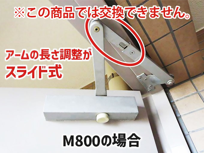 M800シリーズはアーム部分の長さ調整がスライド式の為、交換できません。