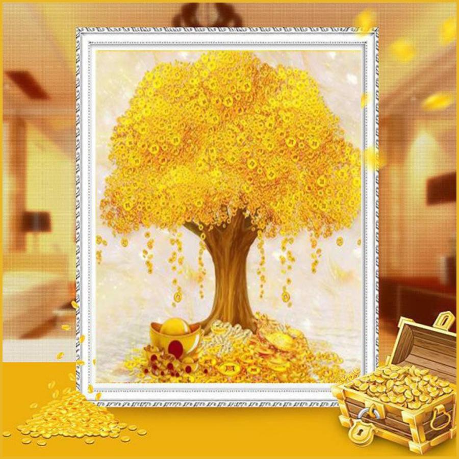 【激安挑戦/厳選品質】 ダイヤモンドアート 手芸キット ビーズアート 初心者 キット 刺繍 キット 図案印刷 金の木 金銭の木 ビーズ 黄金樹 金運 開運 幸運