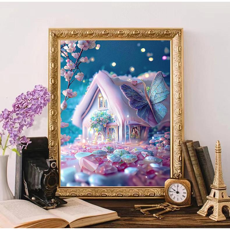 【激安挑戦/厳選品質】 ダイヤモンドアート 手芸キット ビーズアート 初心者 キット 刺繍 キット 図案印刷 景色 花の家 夢のハウス DIY 中級者 手作り 装飾品