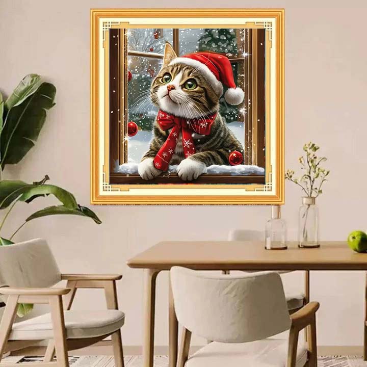 ダイヤモンドアート 猫ちゃん サンタクロース クリスマス やり方簡単 手芸 おしゃれ 初心者 DIY 手作り 装飾品 敬老の日 プチギフト