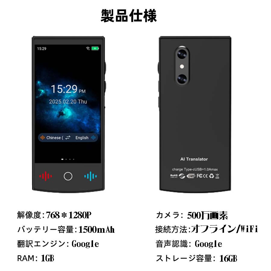 スマート翻訳機 オフライン オンライン 音声 /画像 /写真翻訳 電子辞書 Chatgdp対応 海外旅行 インバウンド 接客業 コミュニケーション 日本語 英語 中国語