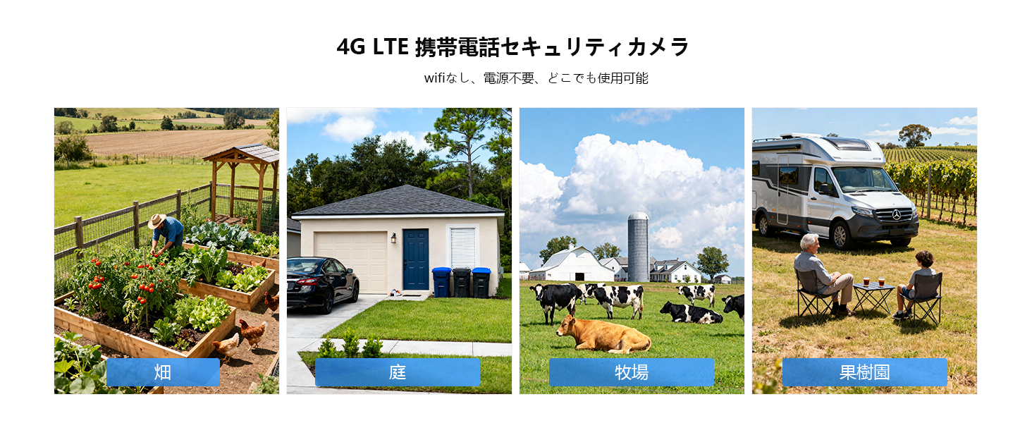 めんどな配線は一切不要、電線が届かないお庭はもちろん、畑や果樹園に最適!