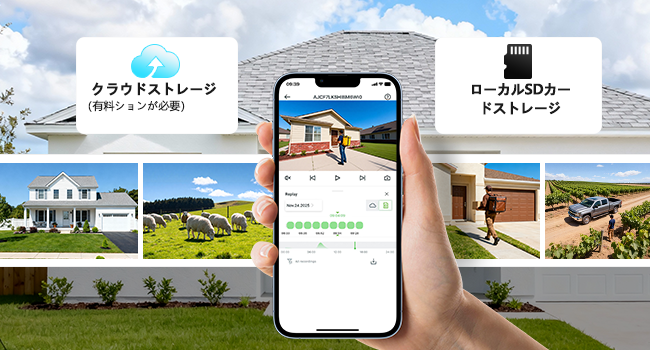 録画内容は最大128GBまで保存可能。録画データはSDカードに保存され、簡単に再生・確認できます。クラウドストレージもオプションで利用可。