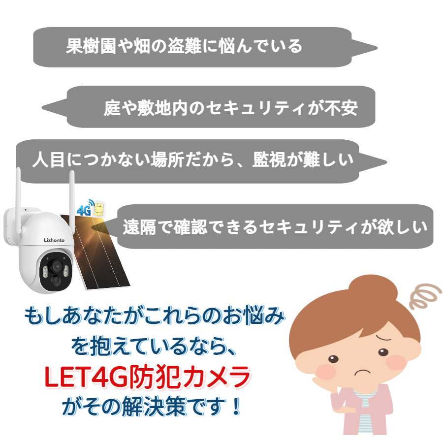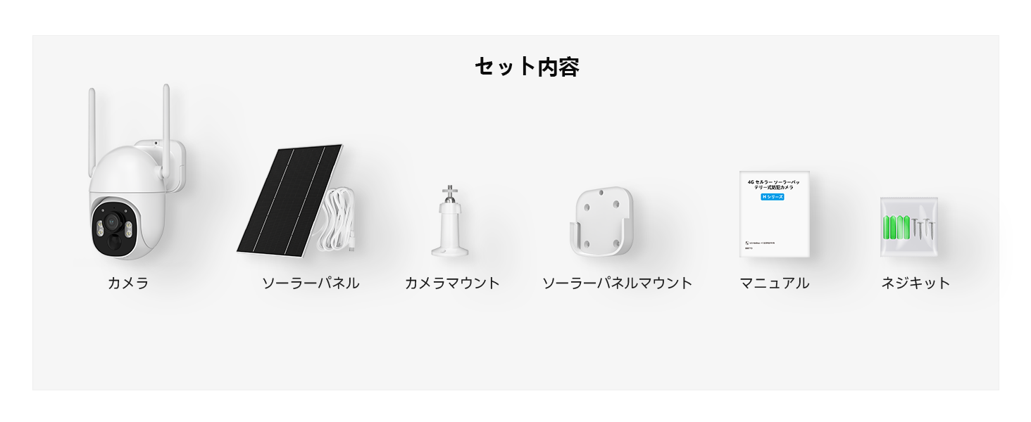 ソーラーパネル式による給電、さらに内蔵のSIMカードによる4G 通信のため、電源確保とwifiが不要