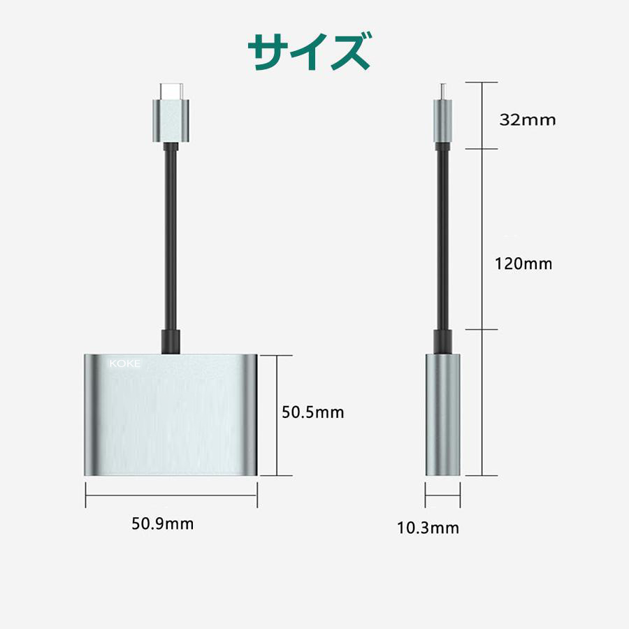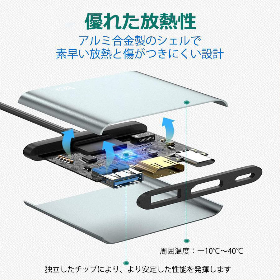 ■【USB Cハブ】: HDMIポート×1、USB3.0ポート×1、PD充電ポート×1。ドライバーやアプリケーションは不要。