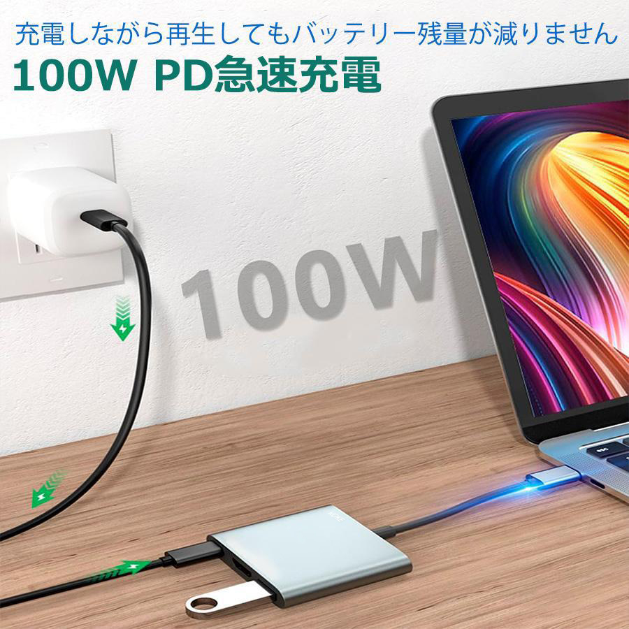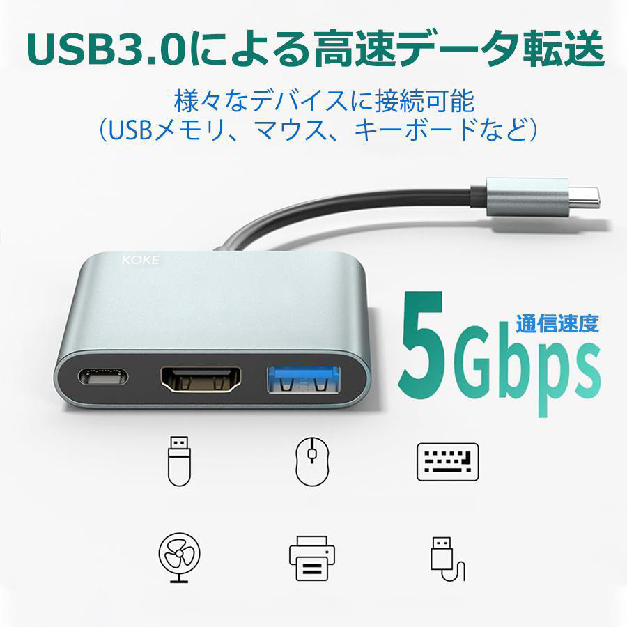 USB C ハブ TypeC 3-in-1 ハブ ドッキングステーション 変換アダプタ USB3.0 ポート HDMI PD 急速充電 高速データ移行 USBハブ typec jy004