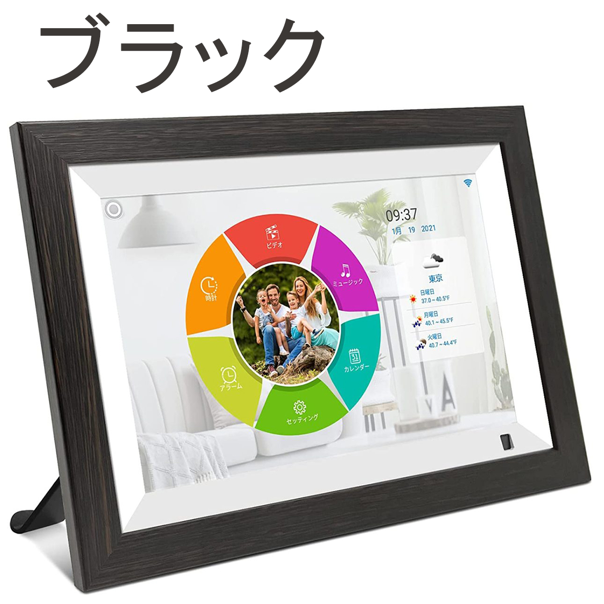 | 充実機能のフォトフレーム | ●写真?動画の再生に加え、カレンダー、時計、目覚まし時計、天気予報など便利な生活機能を搭載。日常生活でとても役立ちます。 |