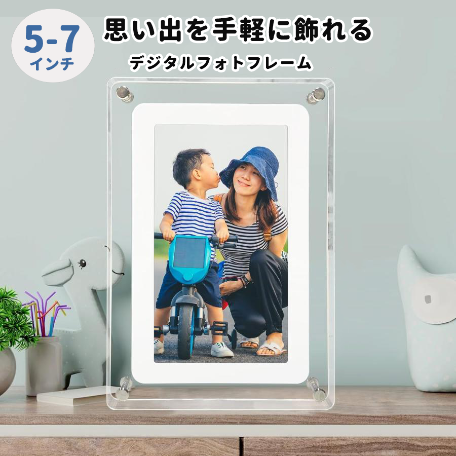 【展示品】充電式 デジタルフォトフレーム 5インチ 7インチ 写真立て アルバム アクリル 動画フレーム 8GBバッテリ プレゼント 両親 卒業式 おもいでばこ