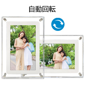 画像の自動回転機能に対応しており、スマートフォトフレームは水平?垂直のどちらの設置にも対応しています。 | | 内蔵バッテリー