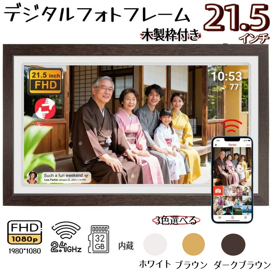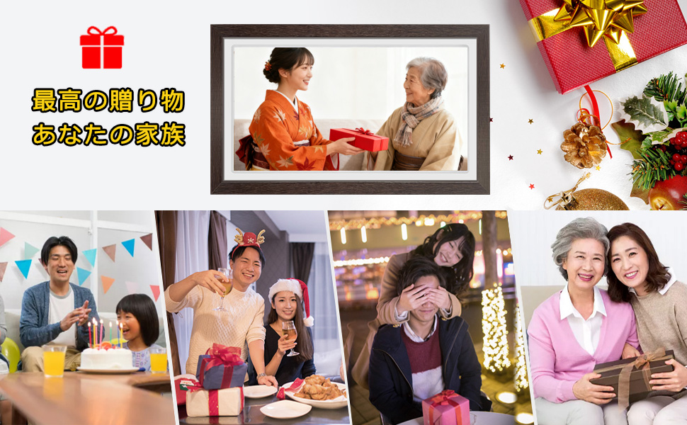 ![]() 最大512人とつながれるデジタルフォトフレーム。 離れて暮らすご家族へ、日々の写真や動画をかんたん送信。 孫の成長や家族の思い出が、いつでも大画面で楽しめます。 家族みんなで共有できる、新しいコミュニケーションツールです。 | ![]() 高解像度1280×800のIPSパネルを採用。 178度の広視野角で、どの角度からも鮮明に表示。 16:10の画面比率&タッチスクリーンで操作も簡単。 写真や動画の細かい部分まで美しく再現します。 |