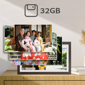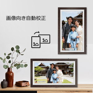 ![]() 本体を縦向き・横向きに置くと、表示が自動で向きを切り替え。 いつでも写真も動画もベストな状態で楽しめます。 毎日が少し特別になる、ギフトにもぴったり。 さらに壁掛けにも対応し、インテリアとしても活躍します。 | ![]() 約80,000枚の写真、または15秒程度の動画を約6000個保存可能。 SDカード・USBメモリー(別売)に対応し、外部ストレージからの再生も簡単。 デジタル保存なので色褪せず、劣化や紛失の心配もありません。 思い出の整理・保管がとても便利です。 |