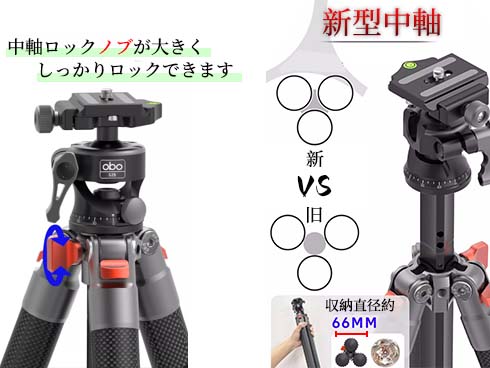 【展示品】OBO ビデオカメラ三脚 一脚 自由雲台 セット 5段階伸縮 360度回転 軽量 中軸 スタンド ビデオカメラ 旅行 運動会 カーボン 収納袋付き 送料無料