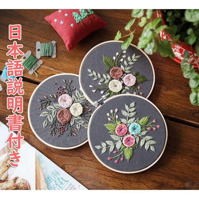クロスステッチキット 花 サンプラー 刺繍キット 立体パンジーの花 フランス刺しゅう キット 針 糸セット 刺繍枠付き 初心者 手作り 手芸キット