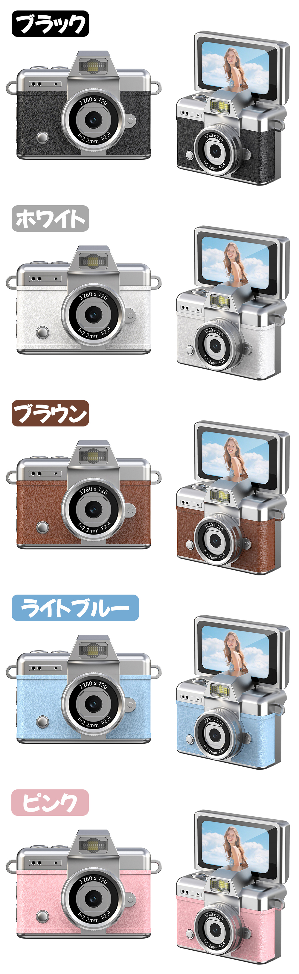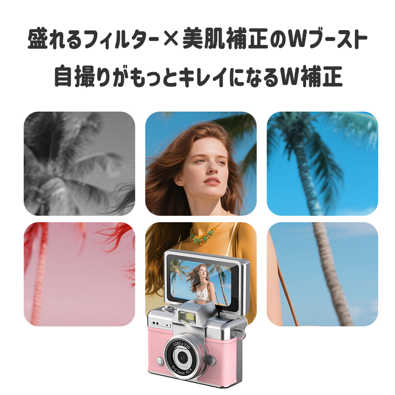 液晶モニターを180°可動させるだけで簡単に自撮り撮影が可能。
