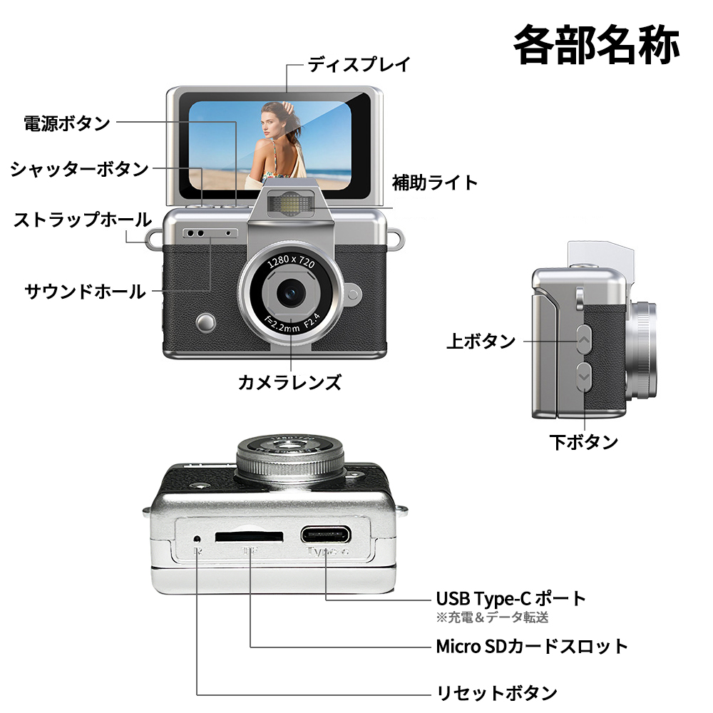 撮影をサポートするLED補助ライト付き。