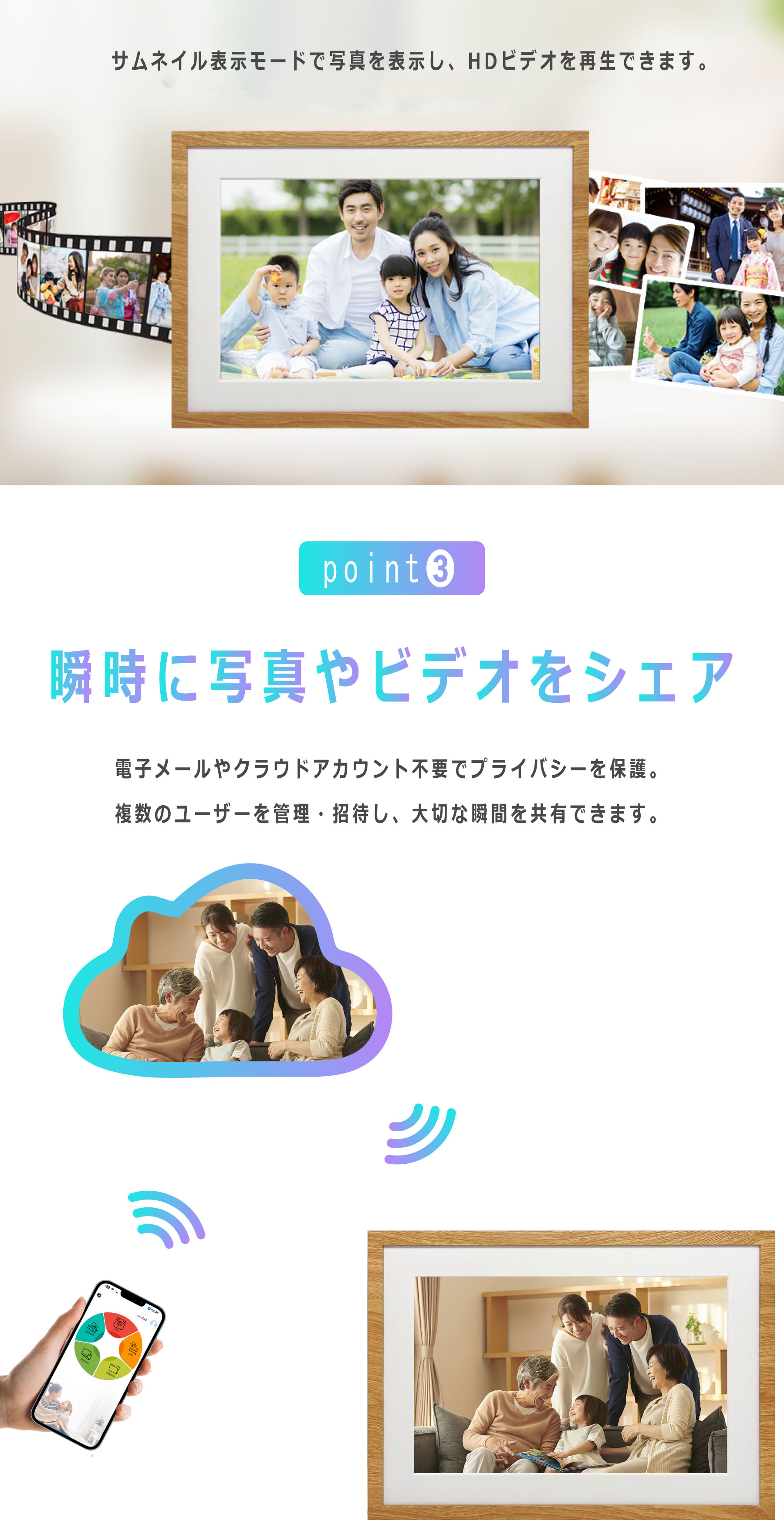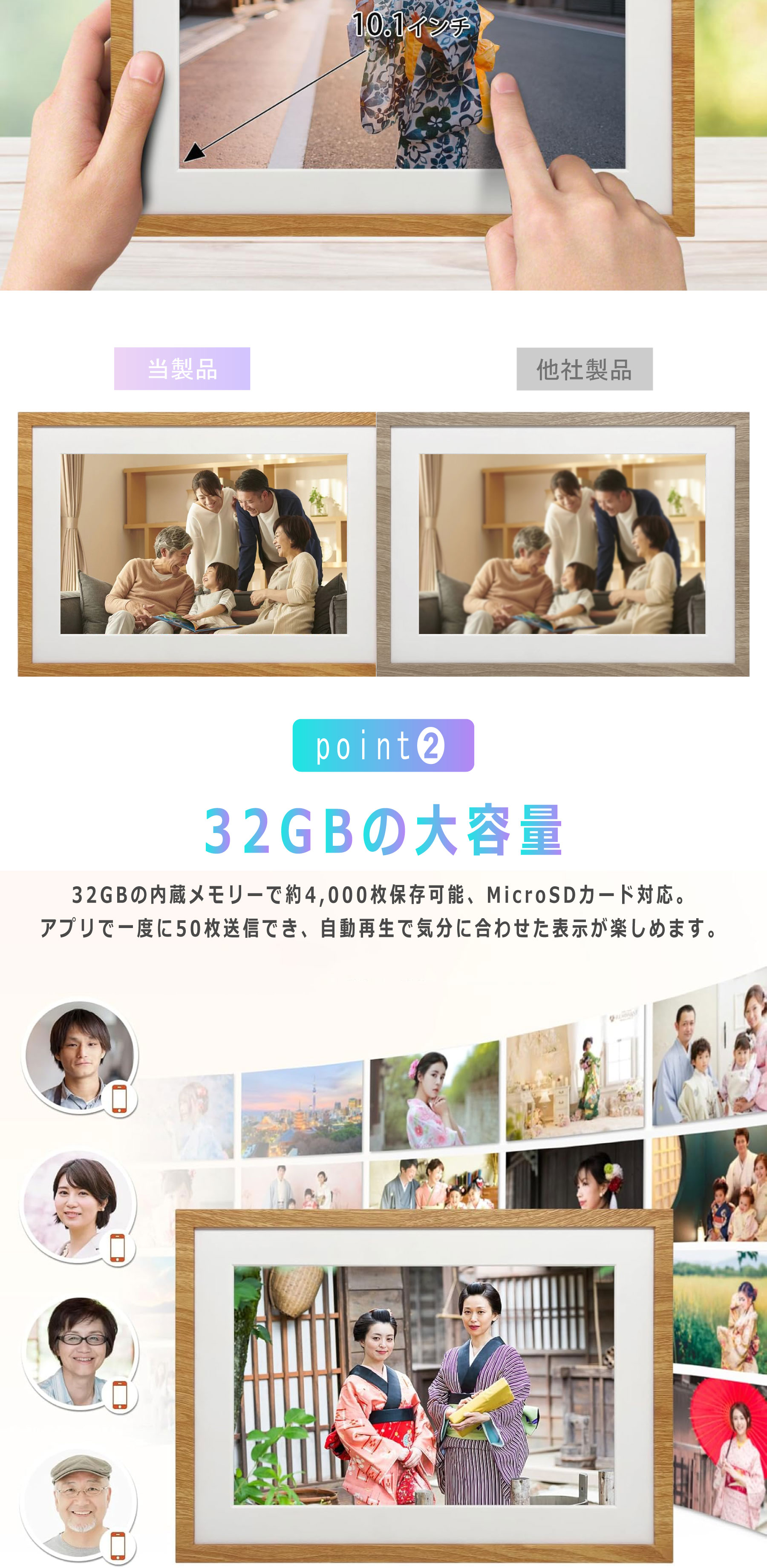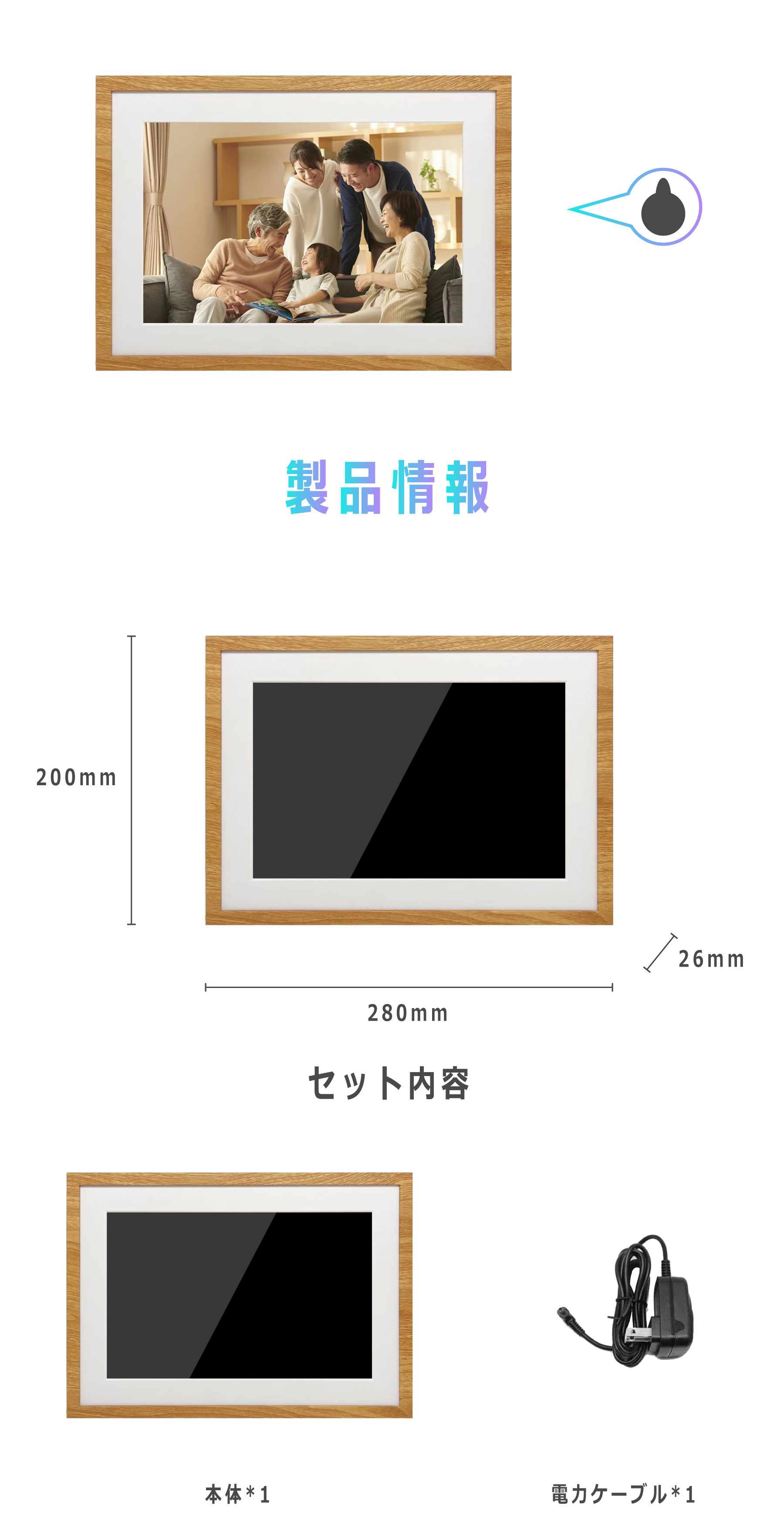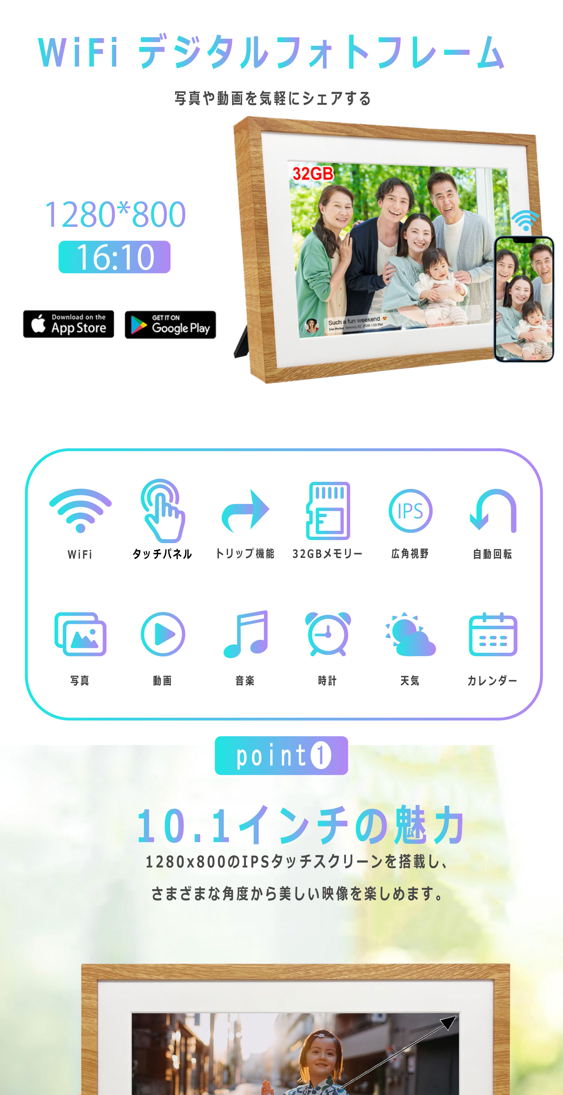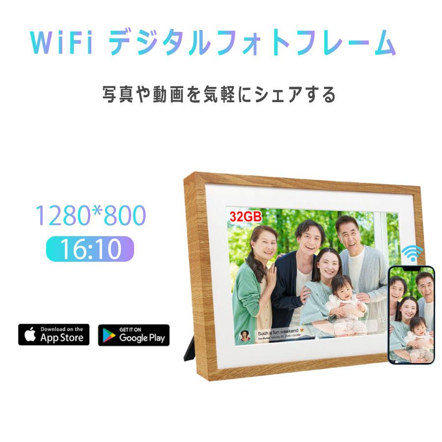 32GB デジタルフォトフレーム 10.1インチWiFiデジタルフォトフレーム1280x800 IPSタッチスクリーン自動回転、壁掛け可能、写真&ビデオ共有 操作簡単