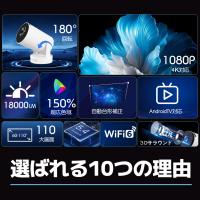 プロジェクター 軽量小型 家庭用 天井投影 小型 180度回転 Android TV 自動台形補正 短距離 スピーカー内蔵 HDMI リモコン ホームシアター wi-fi6