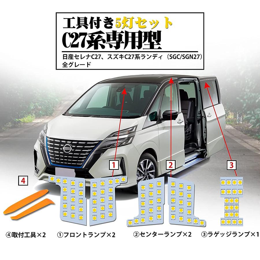 セレナ C27 LEDルームランプ 日産 ホワイト スズキ ランディ 室内灯 専用設計 爆光 カスタムパ ーツ バルブ 内装パーツ 3チップSMD搭載 取付簡単 一年保証