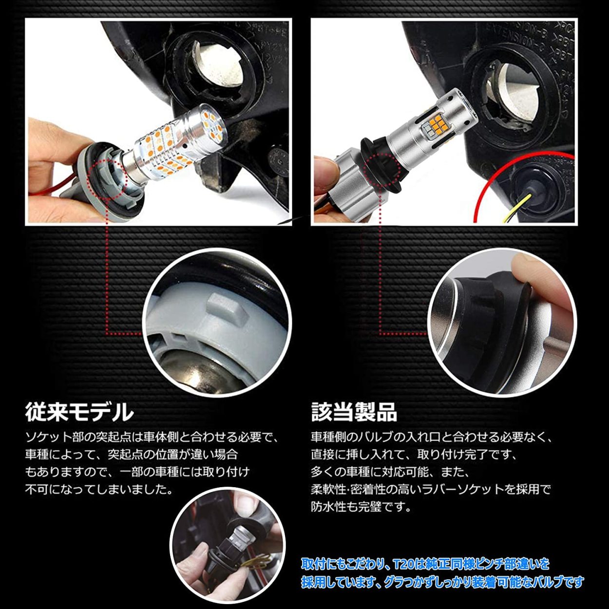 バルブ一つには高品質のSMD LEDチップ 32連が搭載されており、純正より一目瞭然の明るさです。明るくて、純正アンバー色で視認性も良くなります。また、バルブのトップにLEDチップが搭載してなく、反射のみで照らし、他車に差し込むような強列な光を抑え、他車への迷惑はかけません。