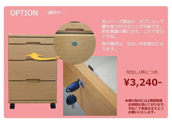 【仕 様】引出し:白シート貼り・レール付キャスター付