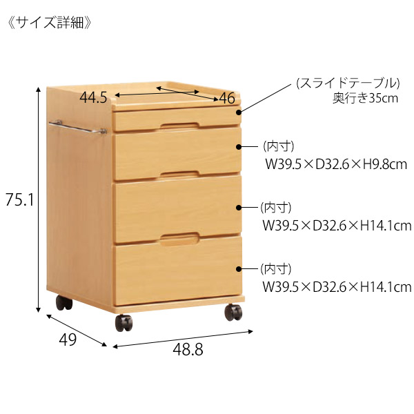 【仕 様】引出し:白シート貼り・レール付、キャスター付