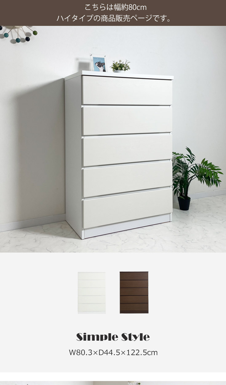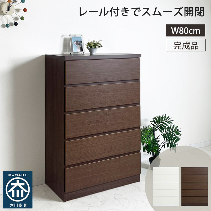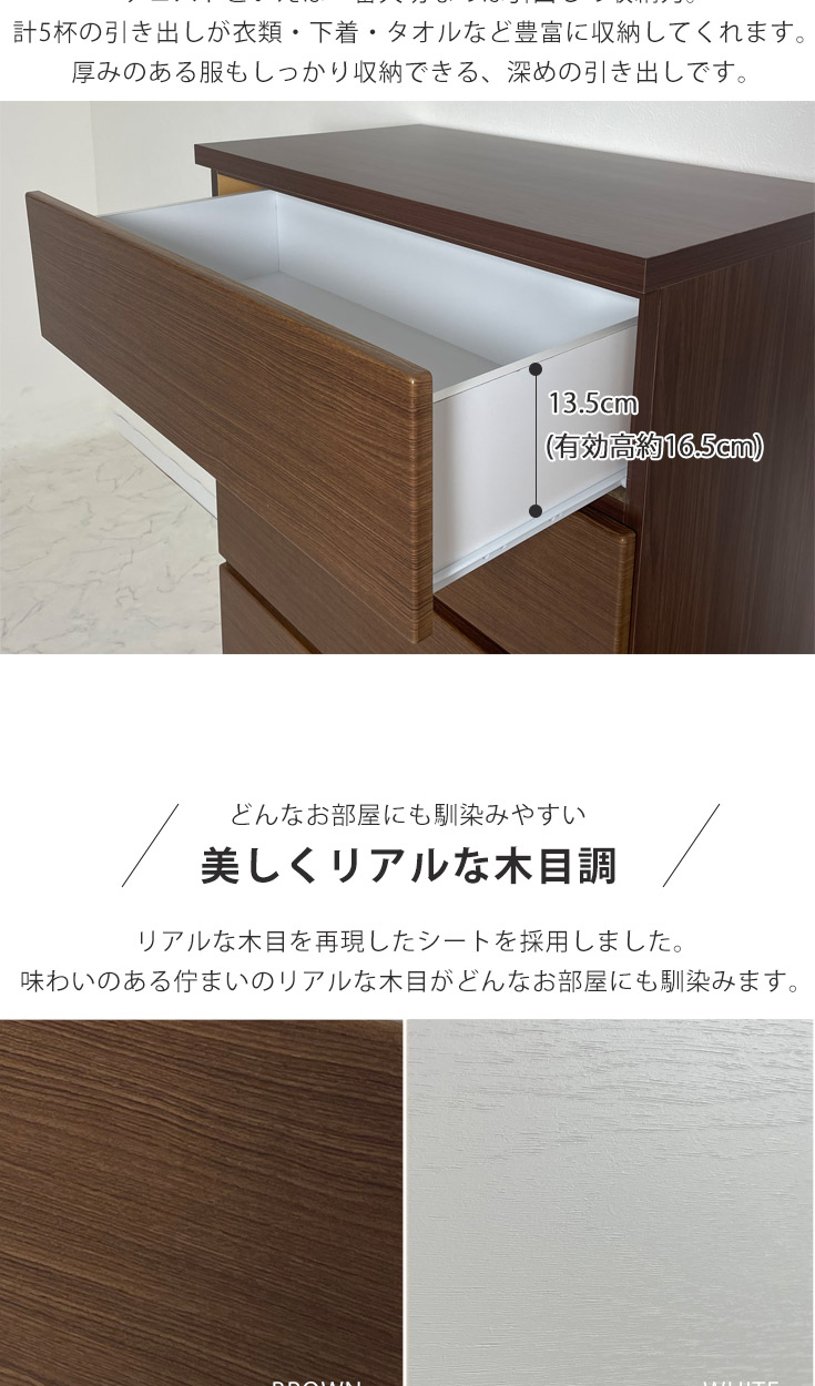 チェスト 白 5段 木製 完成品 幅80cm おしゃれ 引き出し 収納 タンス 衣装ケース 収納棚 北欧