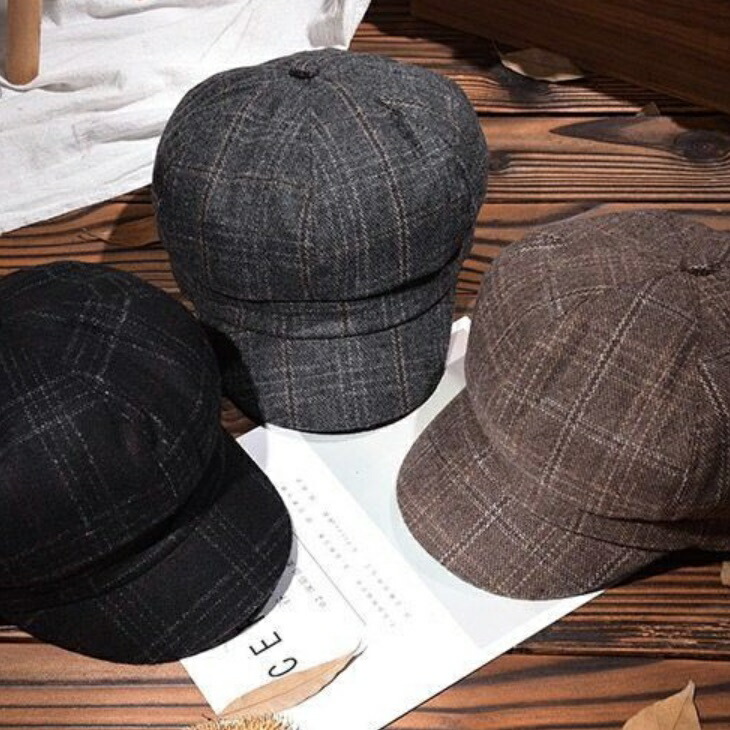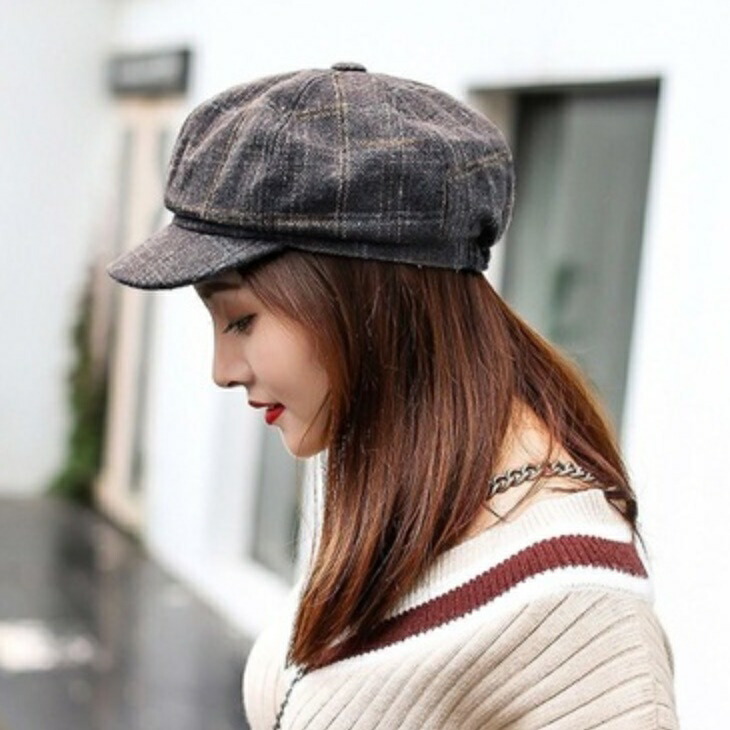 キャスケット チェック 帽子 ハット ベーシック ペアルック アウトドア カジュアル ガーリー シンプル ニット帽 秋 冬 かわいい 日よけ ファッション