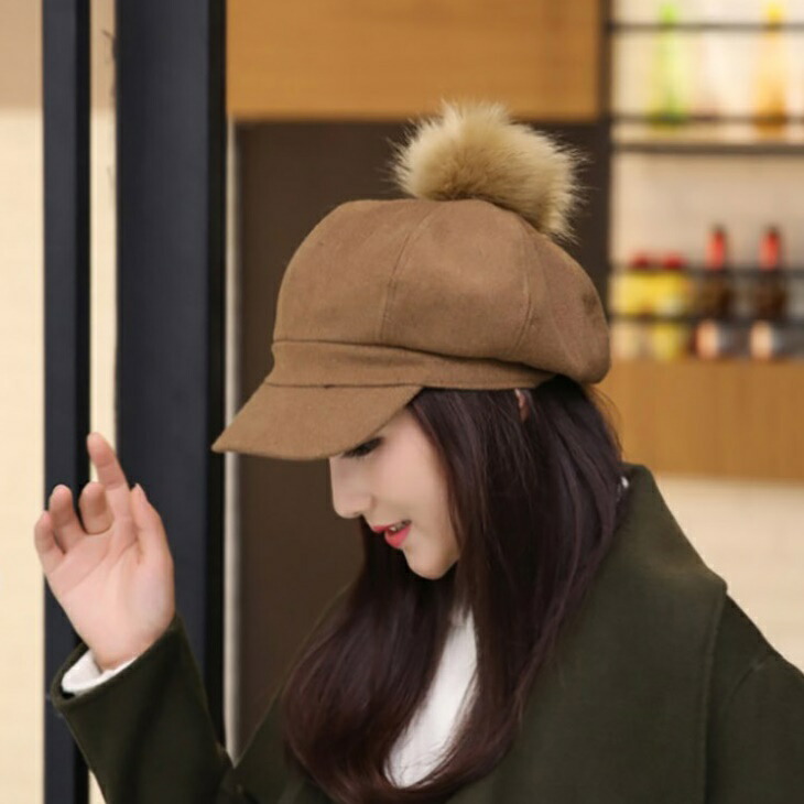 ファー付 キャスケット 帽子 ハット ベーシック ペアルック アウトドア カジュアル ガーリー シンプル ニット帽 秋 冬 かわいい 日よけ ファッション