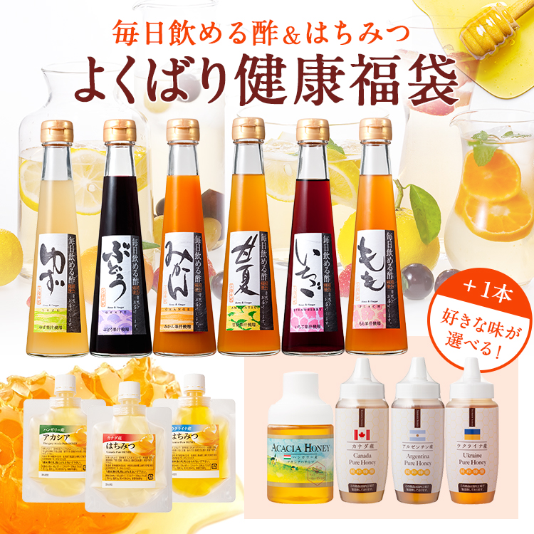 選べるよくばり福袋 毎日飲める酢&はちみつ 福袋 創業85年 熊手のはちみつ(ウクライナ/カナダ/ハンガリー)|飲む酢