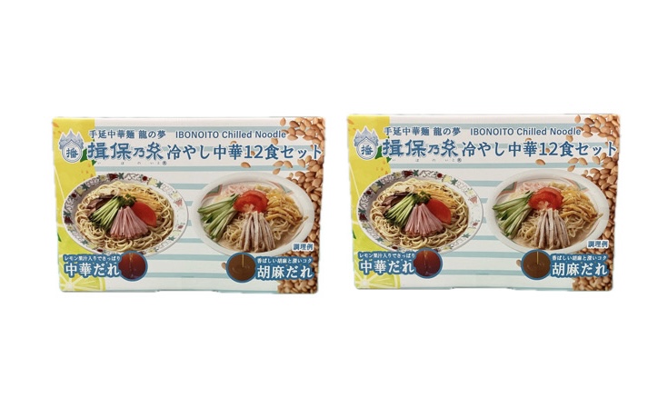 レモン果汁でサッパリとした中華だれと、香ばしい胡麻の風味と深いコクの胡麻だれの2種が、各6食ずつの計12食分とたっぷり入っています。暑い夏に最適の、美味しい麺を堪能できる冷やし中華をご自宅でお楽しみください。贈り物にも最適です。揖保乃糸 冷やし中華 12食セット (2種×6食)×2箱 計24食分