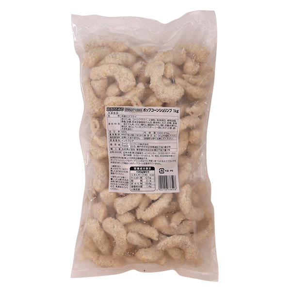 ポップコーンシュリンプはポップコーンのように手軽に食べられるえびフライです。料理名であり、この商品にはポップコーンは含まれていません。