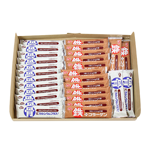 ※セット内容例:鉄プラスコラーゲンウエハース 1枚×14コ、骨にカルシウムウエハース 1枚×14コ