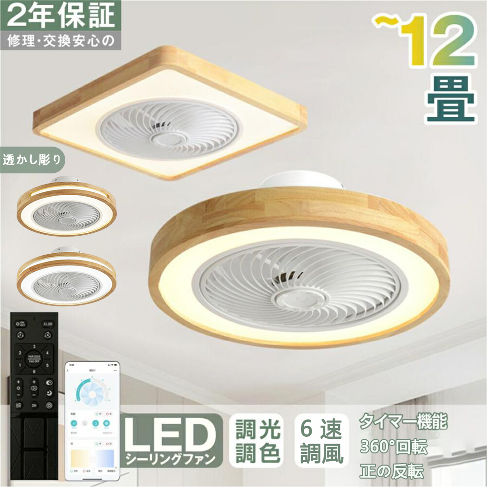 シーリングファンライト LED 調光調色 正の反転 サーキュレーター シーリングライト 12畳 ファン付き 6段階風力調節 リモコン操作 APP対応 照明器具 天井照明