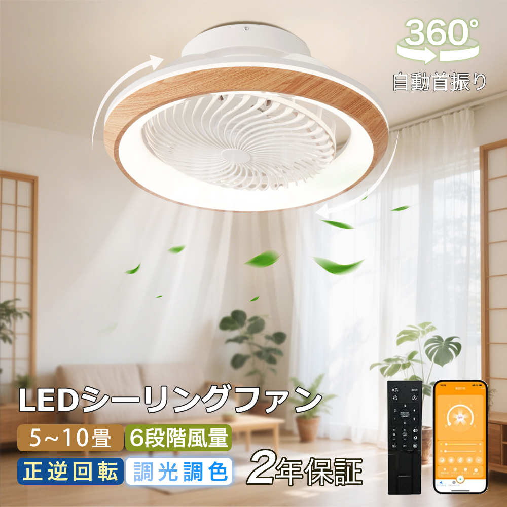 シーリングファンライト 360°自動首振り 調光調色 5~10畳 シーリングファン おしゃれ 北欧 LED 風量調節 DCモーター サーキュレーター 空気循環 静音 扇風機