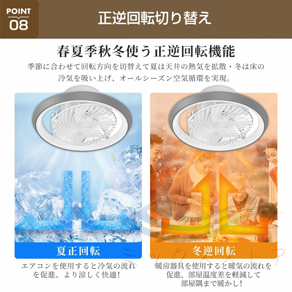 ファン ライトが正転して夏は涼風を供給し、ファン ブレードが逆回転して冬は空気の循環を促進します。