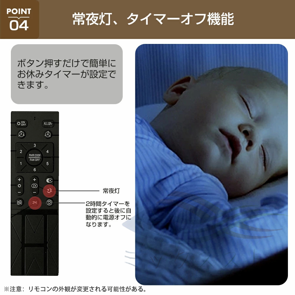 ファンライトは純銅の周波数変換モーターを採用し、ファンライトは5枚の大型ファンブレードを採用し、大風量と静音動作を確保。ご家族やお子様に夜の快適な睡眠環境を。
