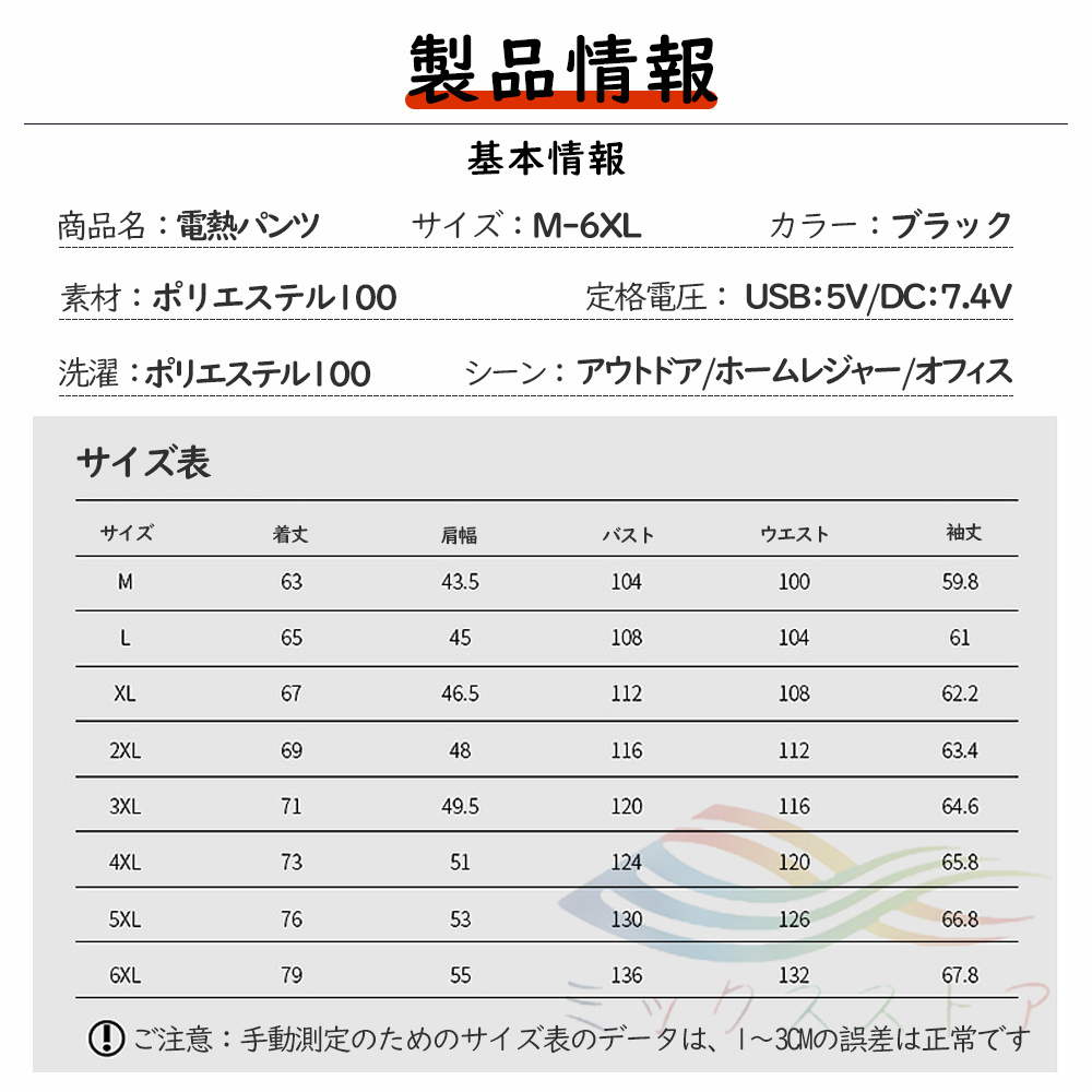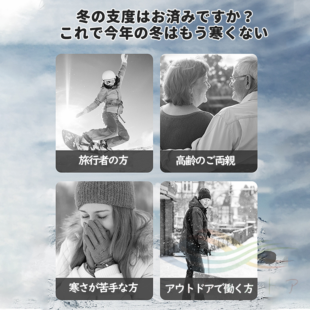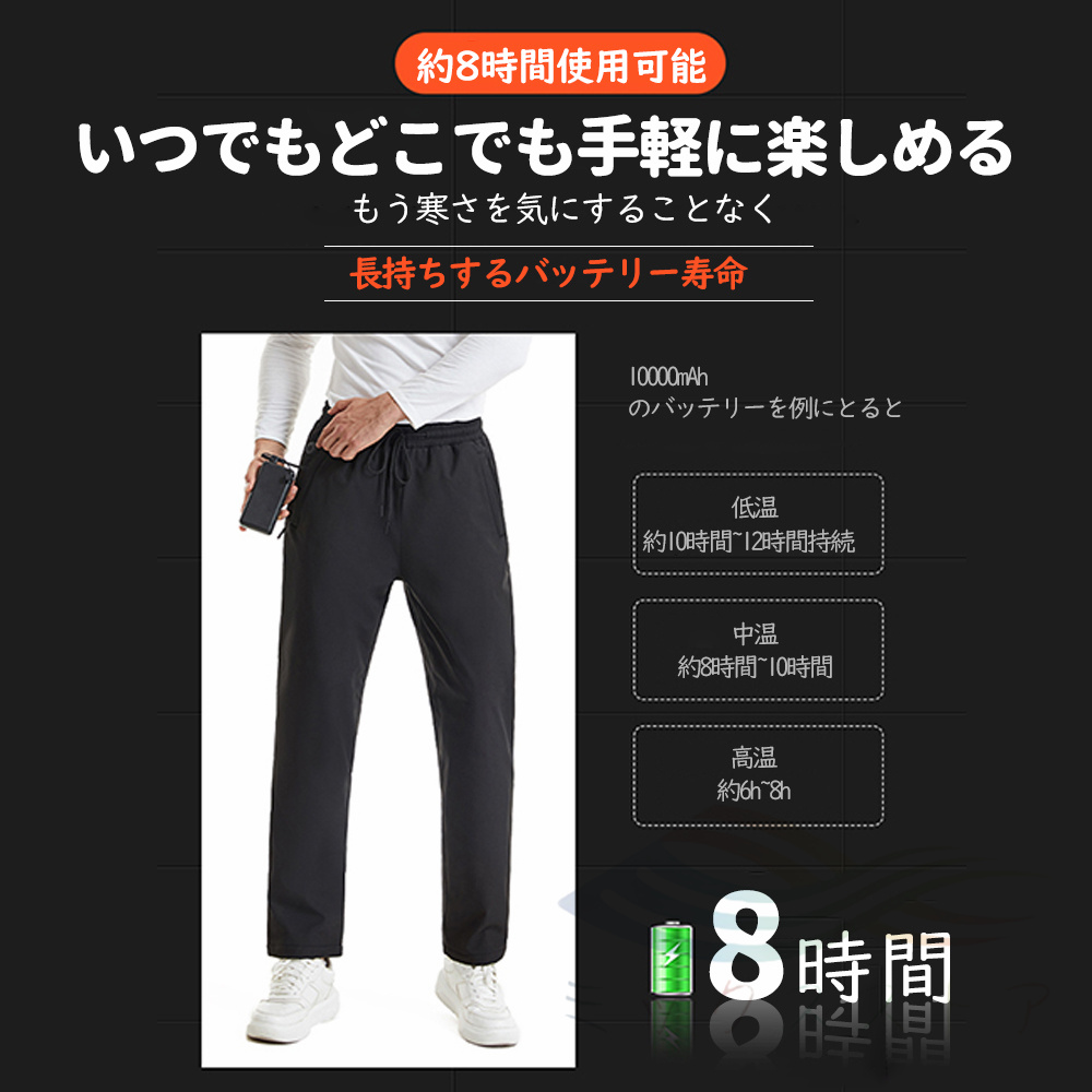 モバイルバッテリーで給電するので、どこでもホカホカと寒さから守ります。加熱しなくても冷たい感じがないから、普通のルームウェアとしても使用できます。電熱インナーウェアはオフィスでの防寒対策に、また家でリラックスしたいにも適用します。インナーウェアとしてキャンプ、ハイキング、乗馬、バイク、スキー、ランニングなどのアウトドアスポーツの場合にも活躍します、キャンプ、バイク、ゴルフ、スキー、登山、屋外活動、現場作業、夜勤、夜釣り、旅行、在宅、通勤、通学。